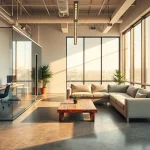 Le choix des matériaux joue un rôle central dans cette démarche. Des finitions qualitatives, des revêtements de sol durables et des cloisons bien isolées phoniquement créent une atmosphère professionnelle. L’éclairage LED modulable permet d’adapter l’ambiance selon les moments de la journée et de mettre en valeur vos supports de présentation.